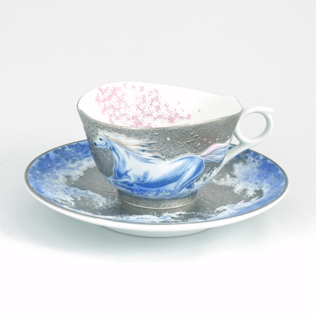 珈琲碗 プラチナ彩白馬絵