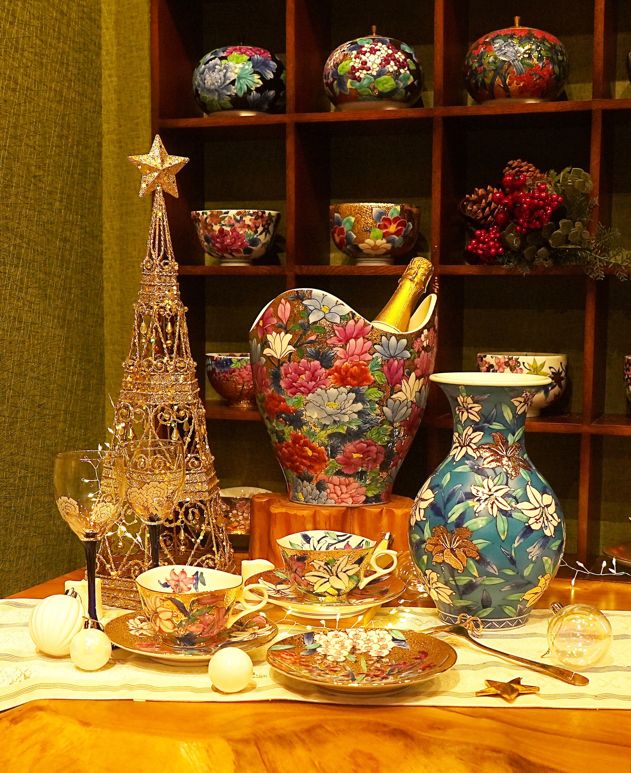 金彩がイルミネーションの光を美しく反射して、食卓に温かな幸せを加えます。