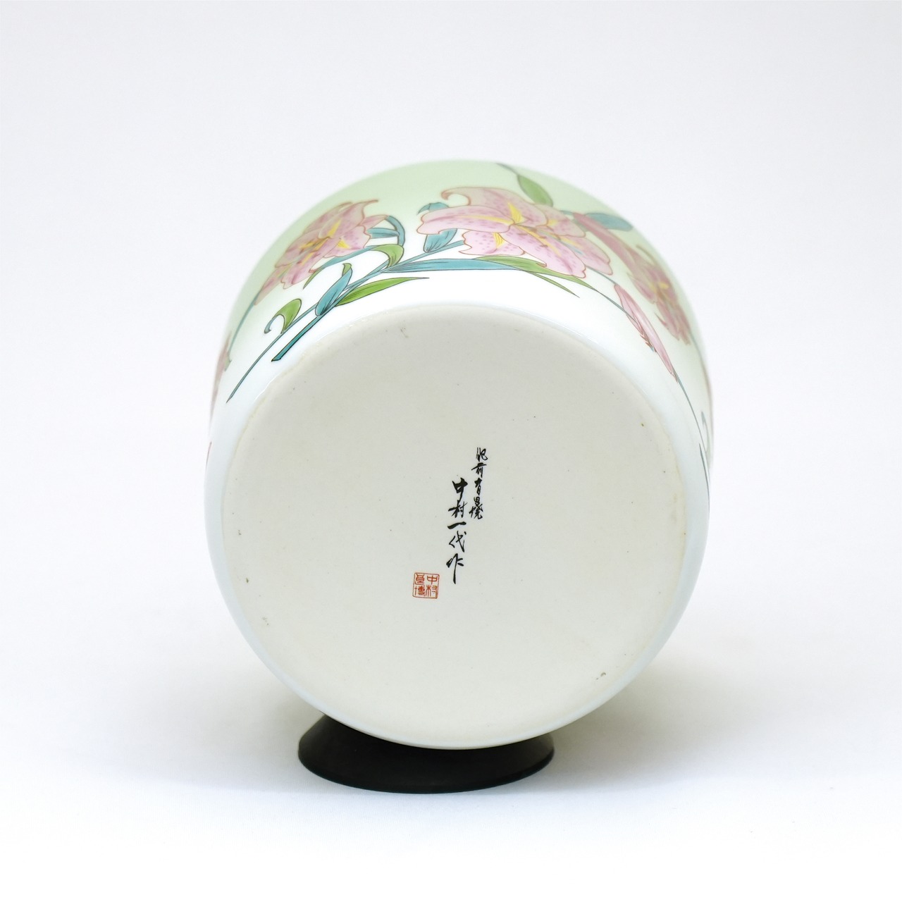 有田焼磁器に、陶画絵師 中村 一代が季節の花を描きました。