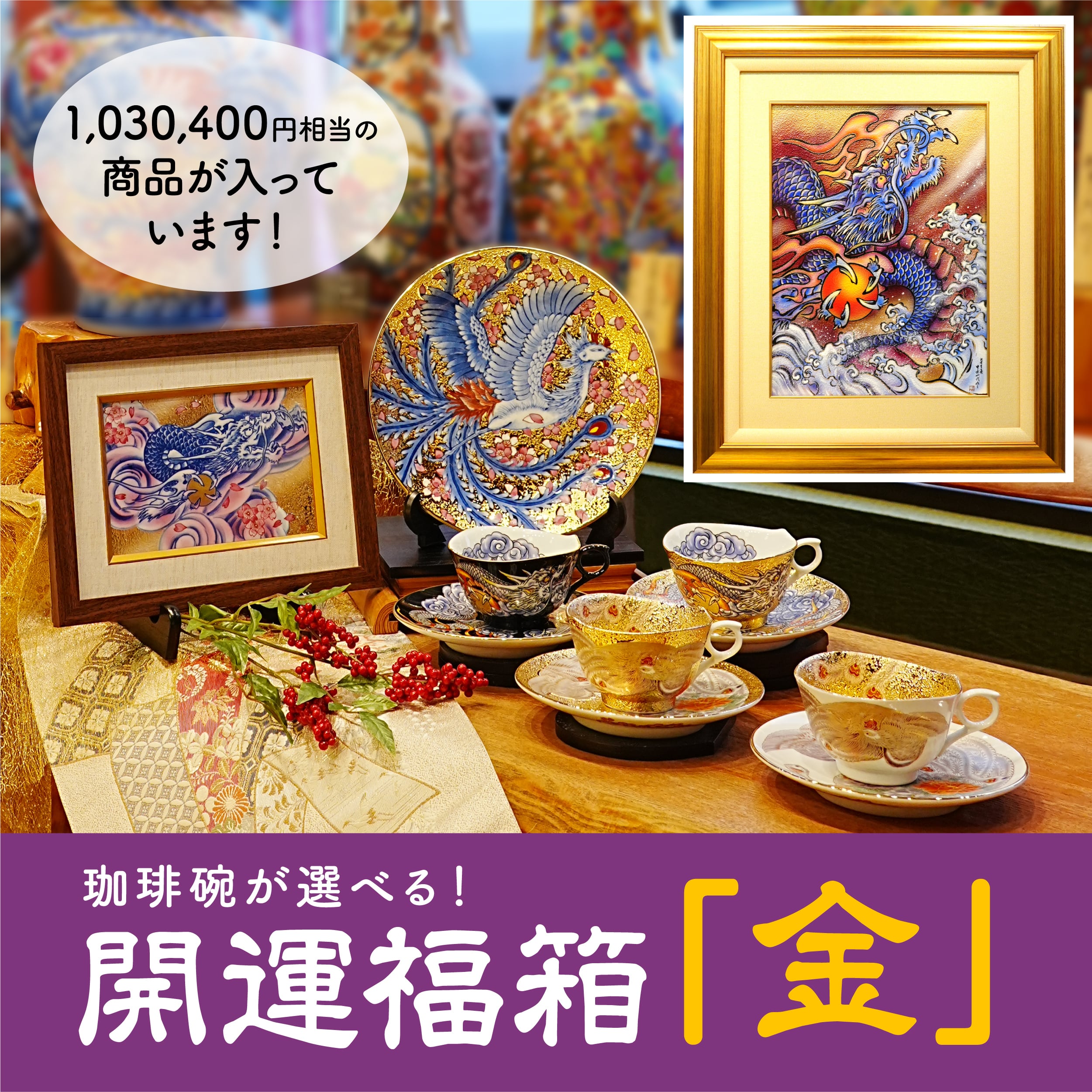 「龍」と「鳳凰」をモチーフにした金彩作品をメインに選び抜いています。