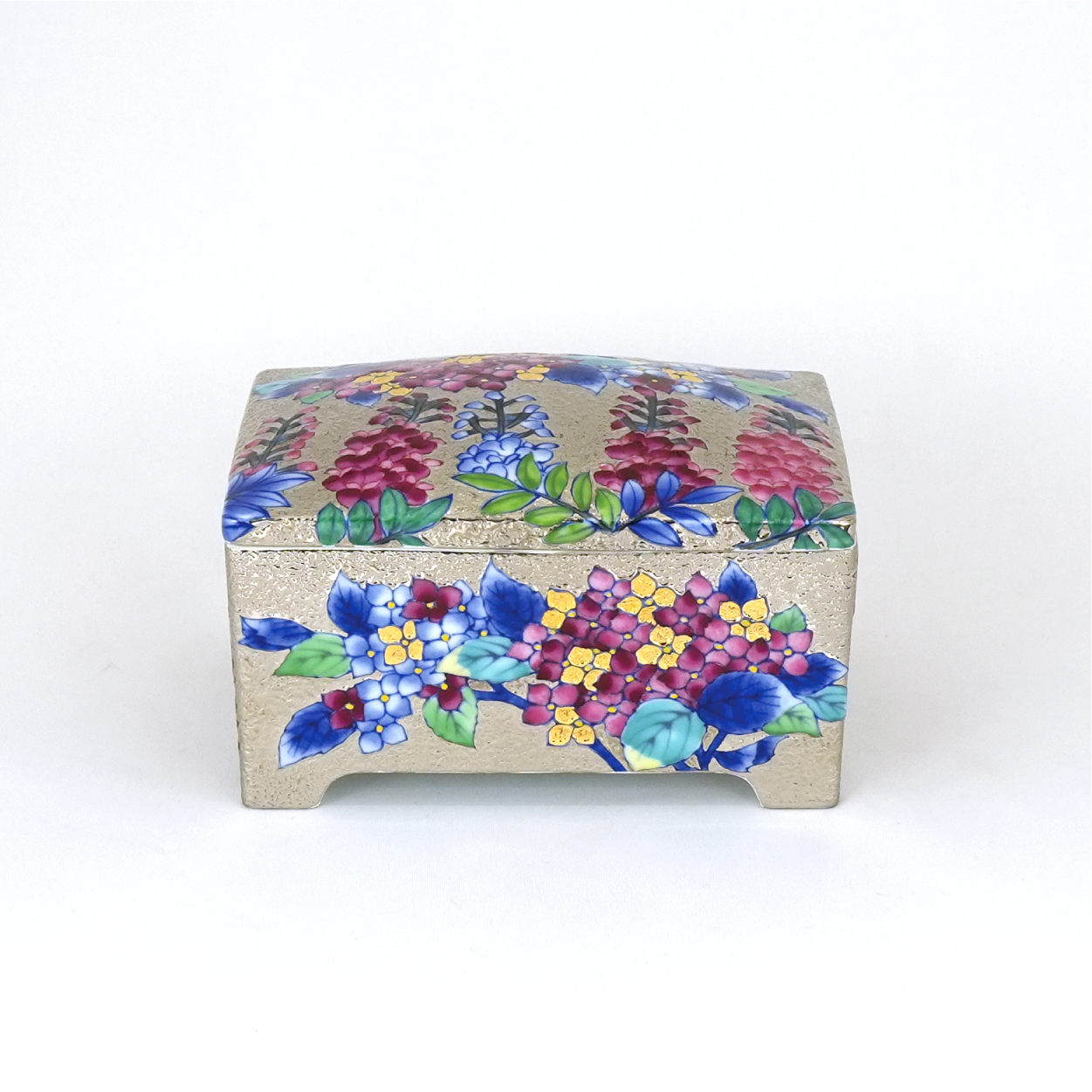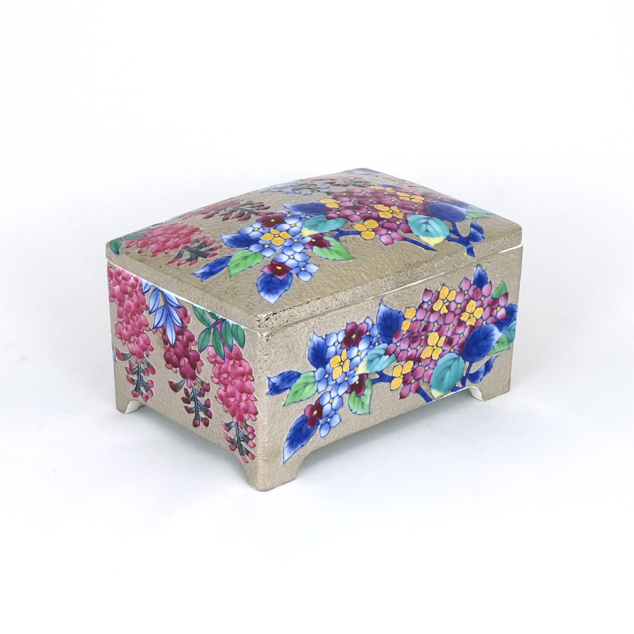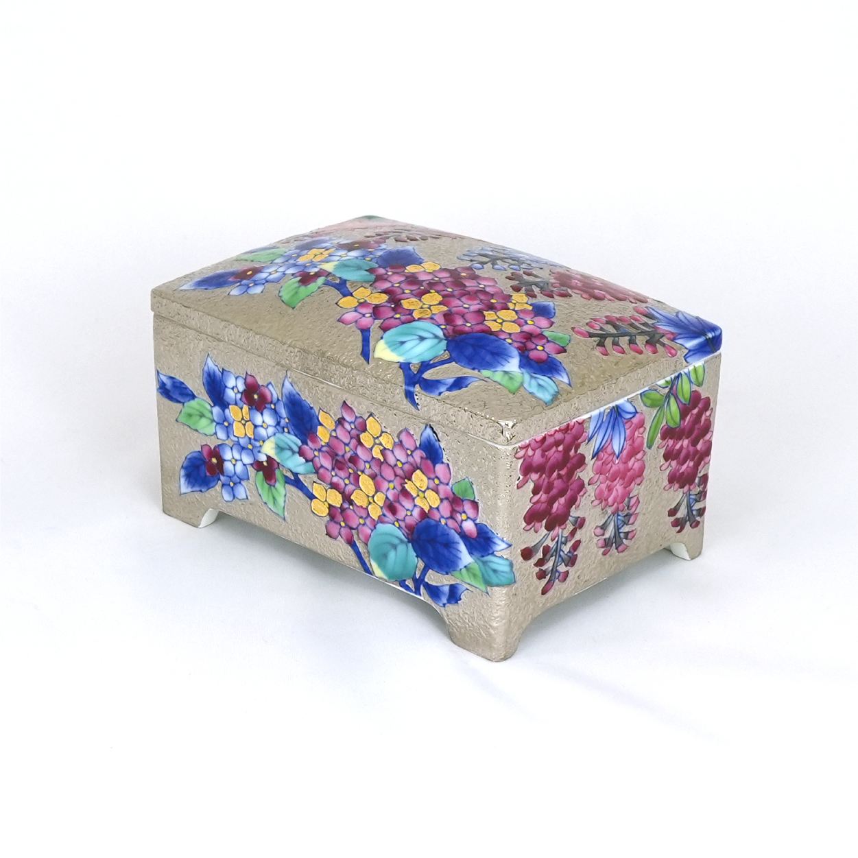 【アウトレット商品】有田焼磁器小箱『あまのと』プラチナ彩藤紫陽花図