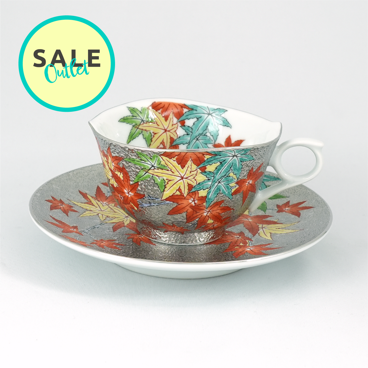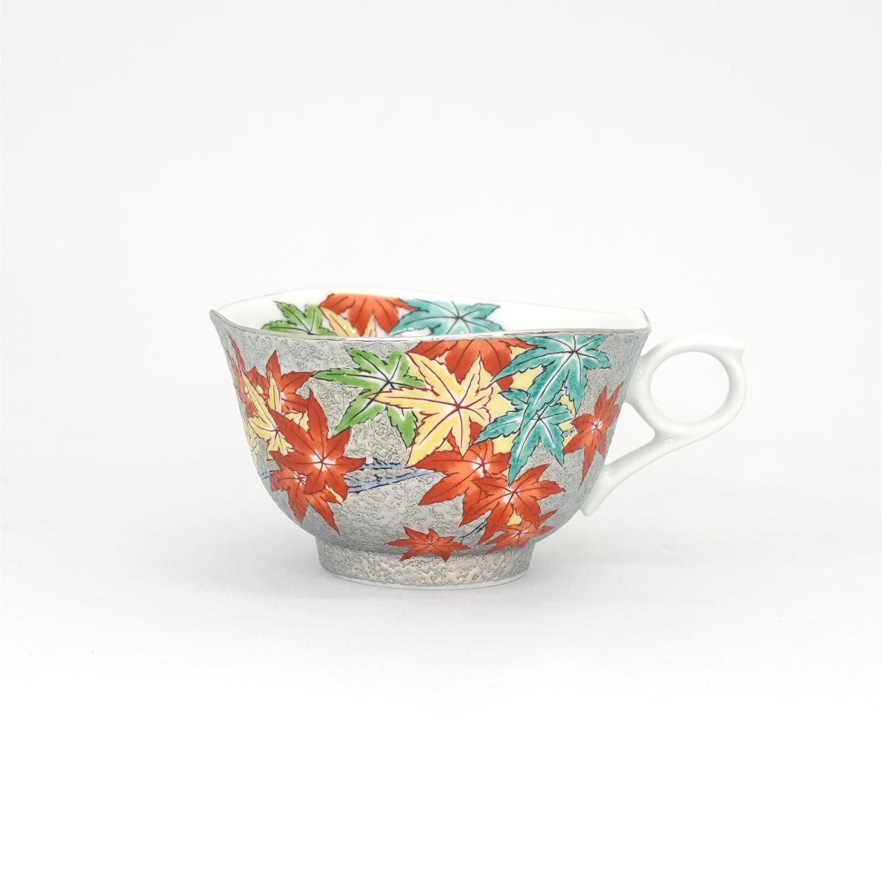 【アウトレット商品】珈琲碗プラチナ彩紅葉絵
