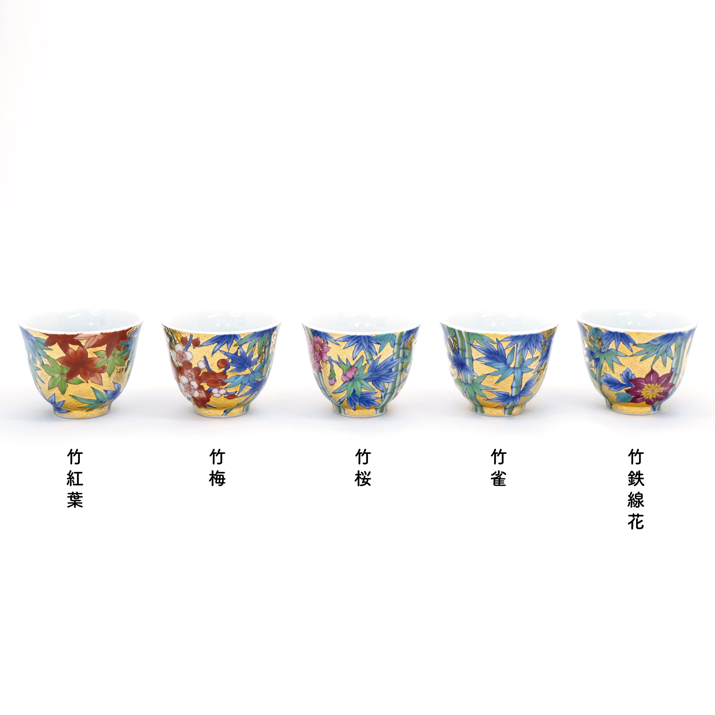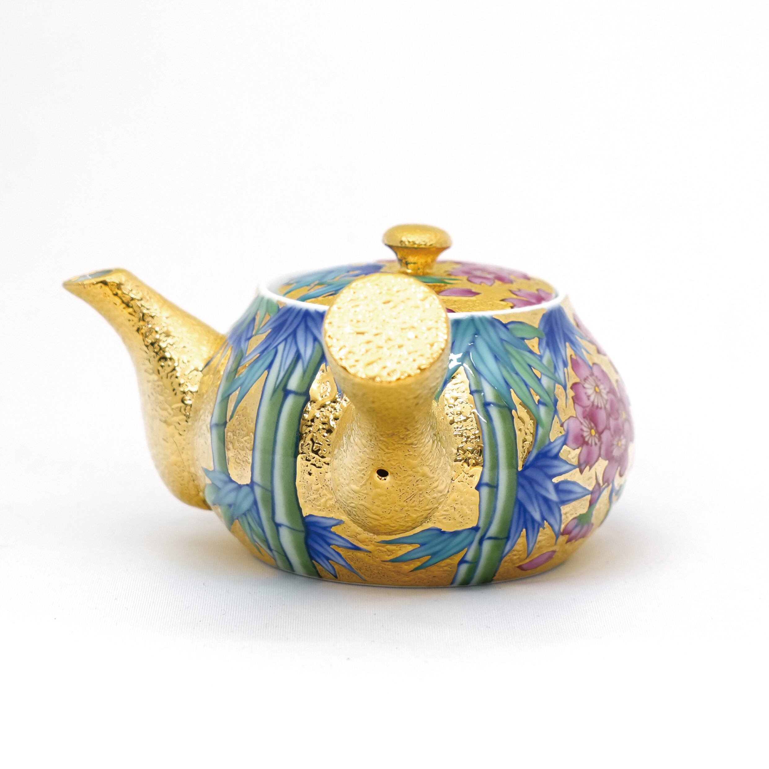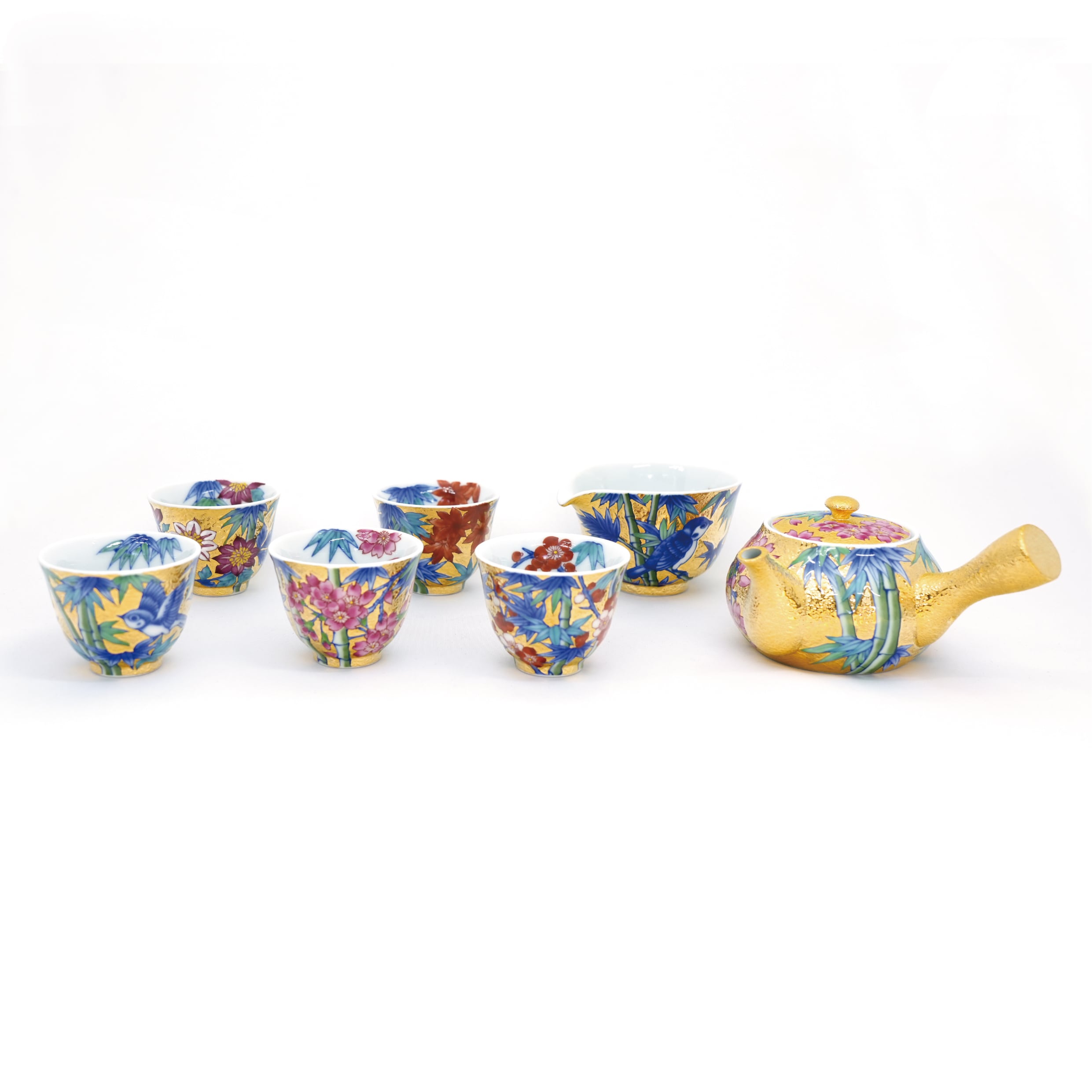 【アウトレット商品】竹林四季絵シリーズ 金彩煎茶碗 5種+急須+湯冷ましセット
