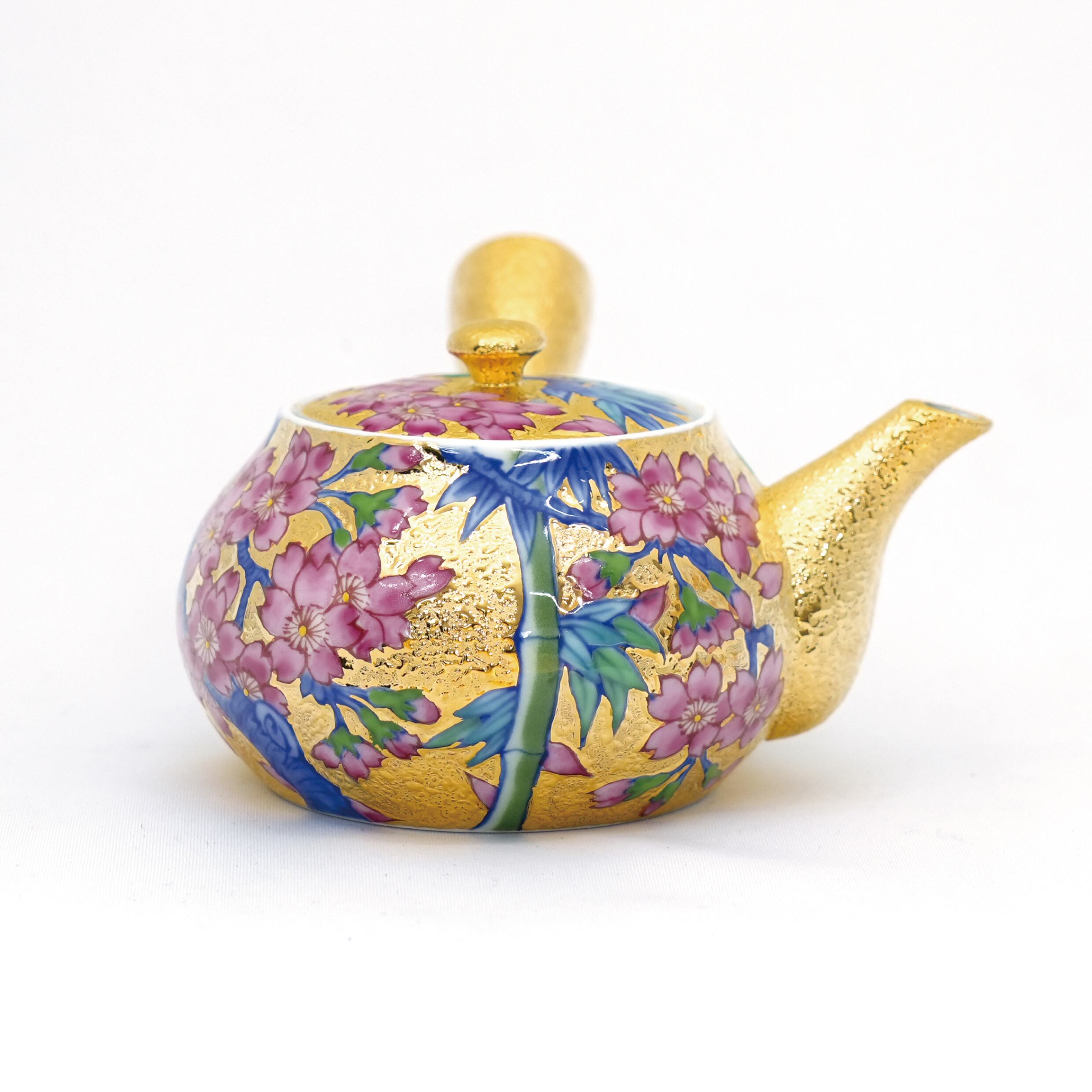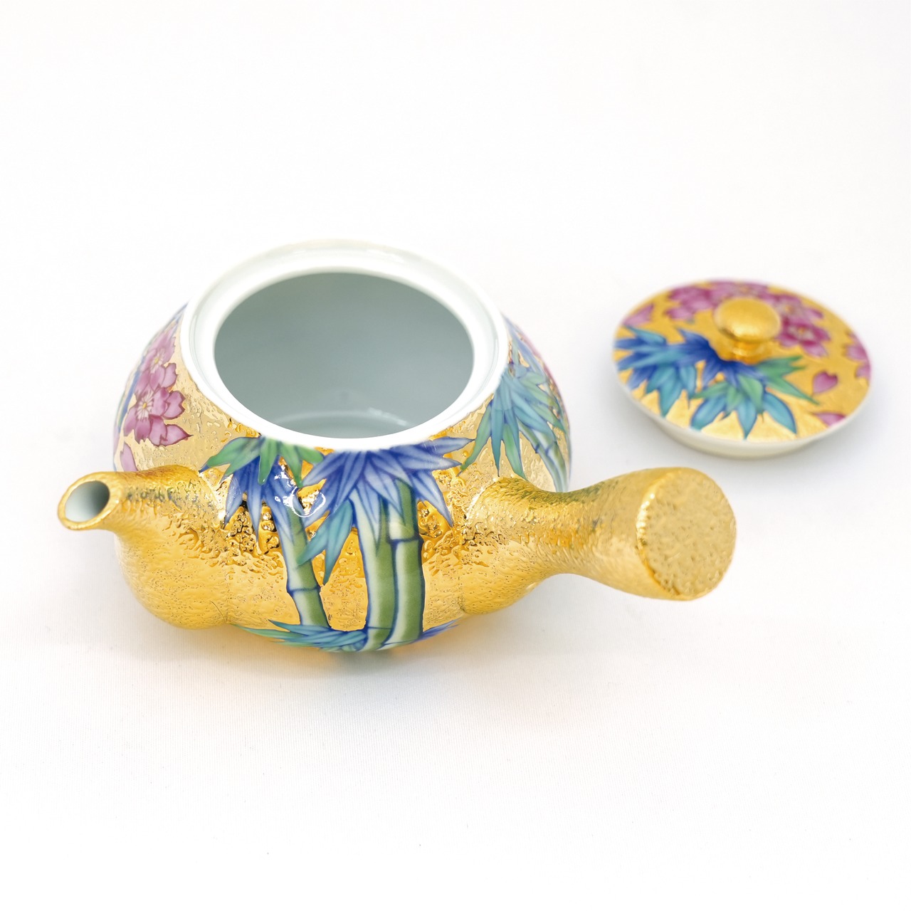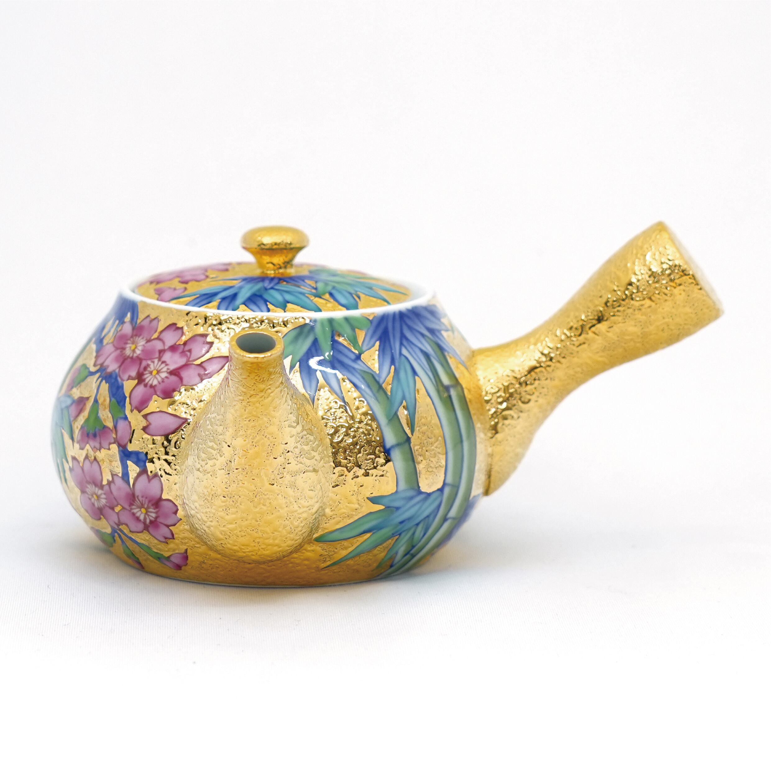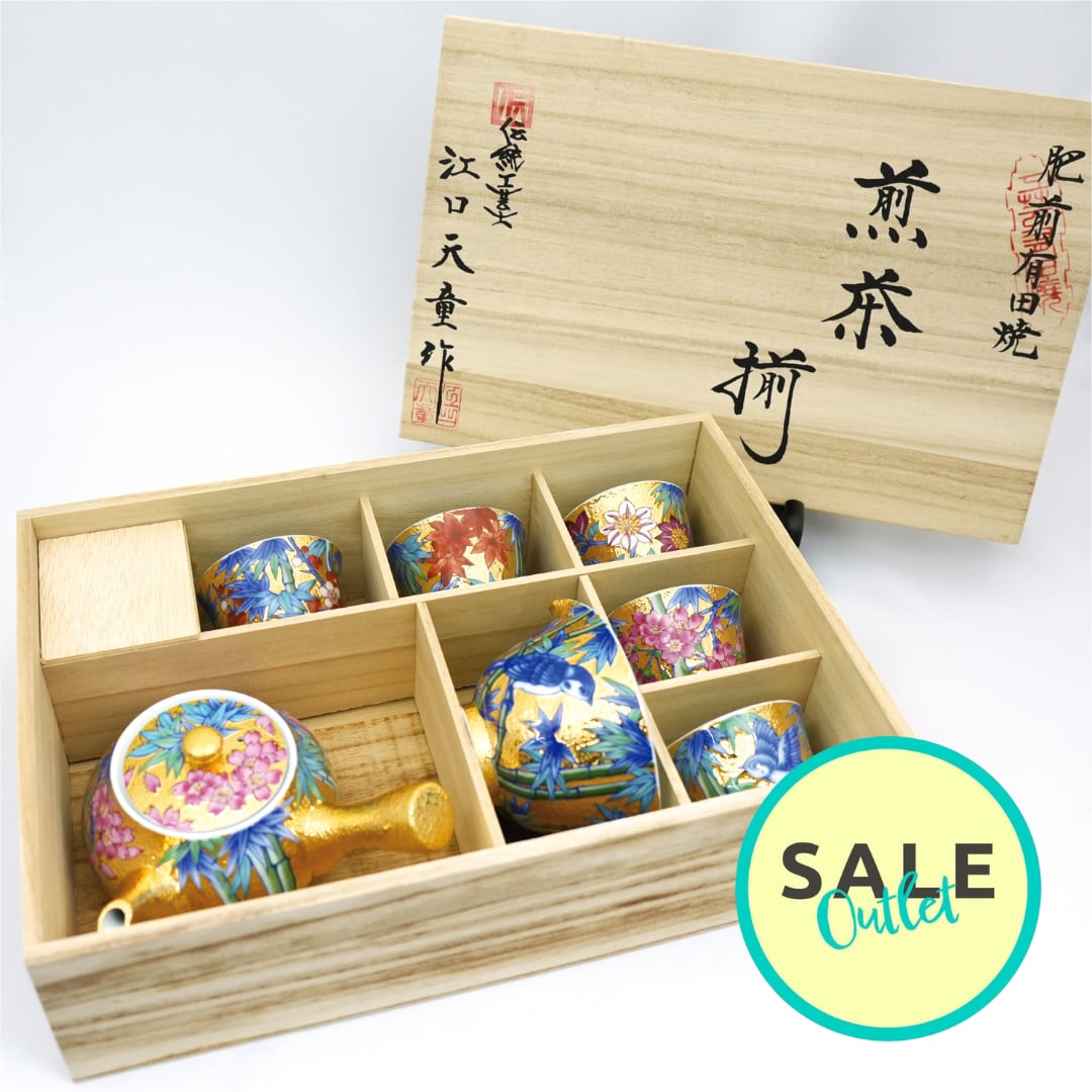 【アウトレット商品】竹林四季絵シリーズ 金彩煎茶碗 5種+急須+湯冷ましセット
