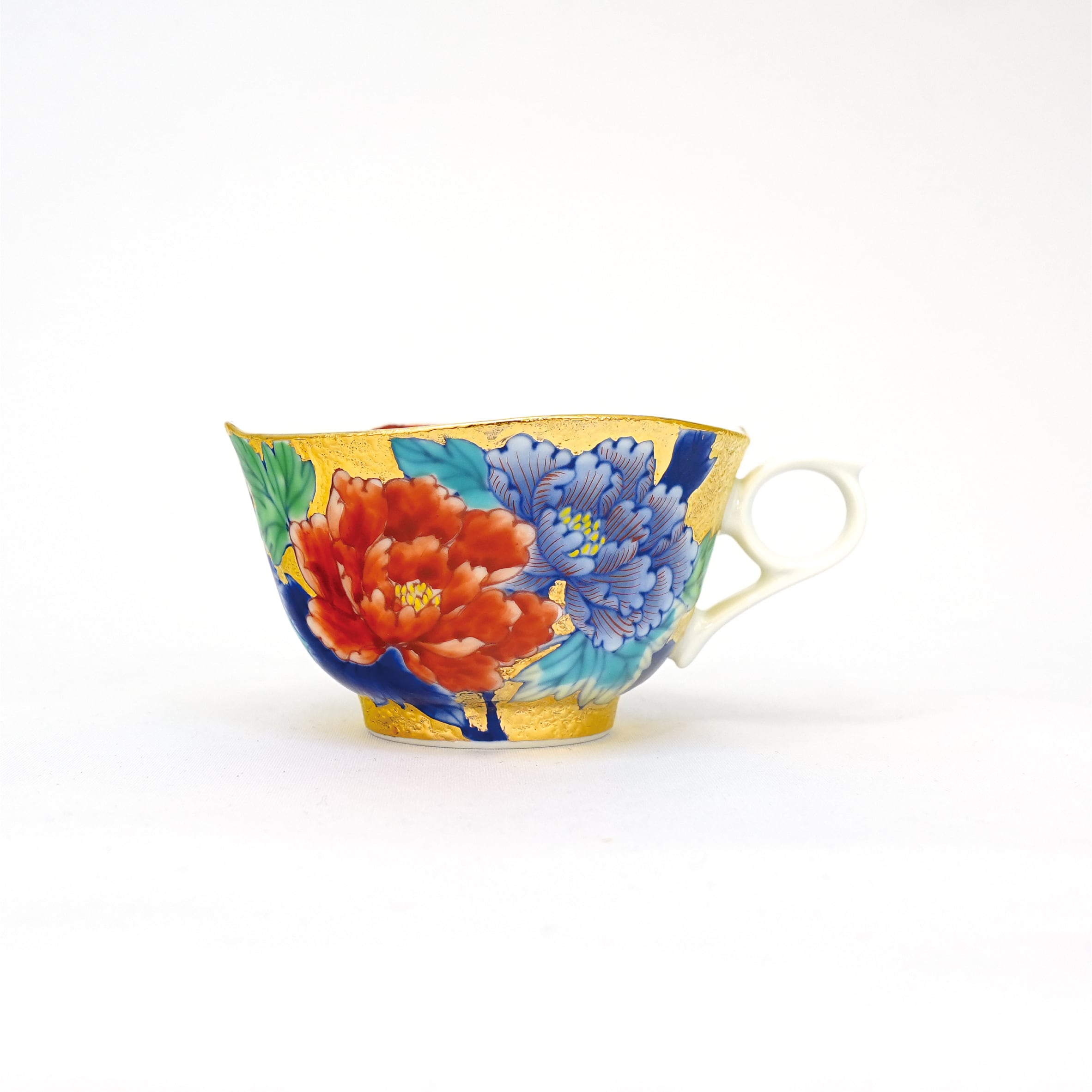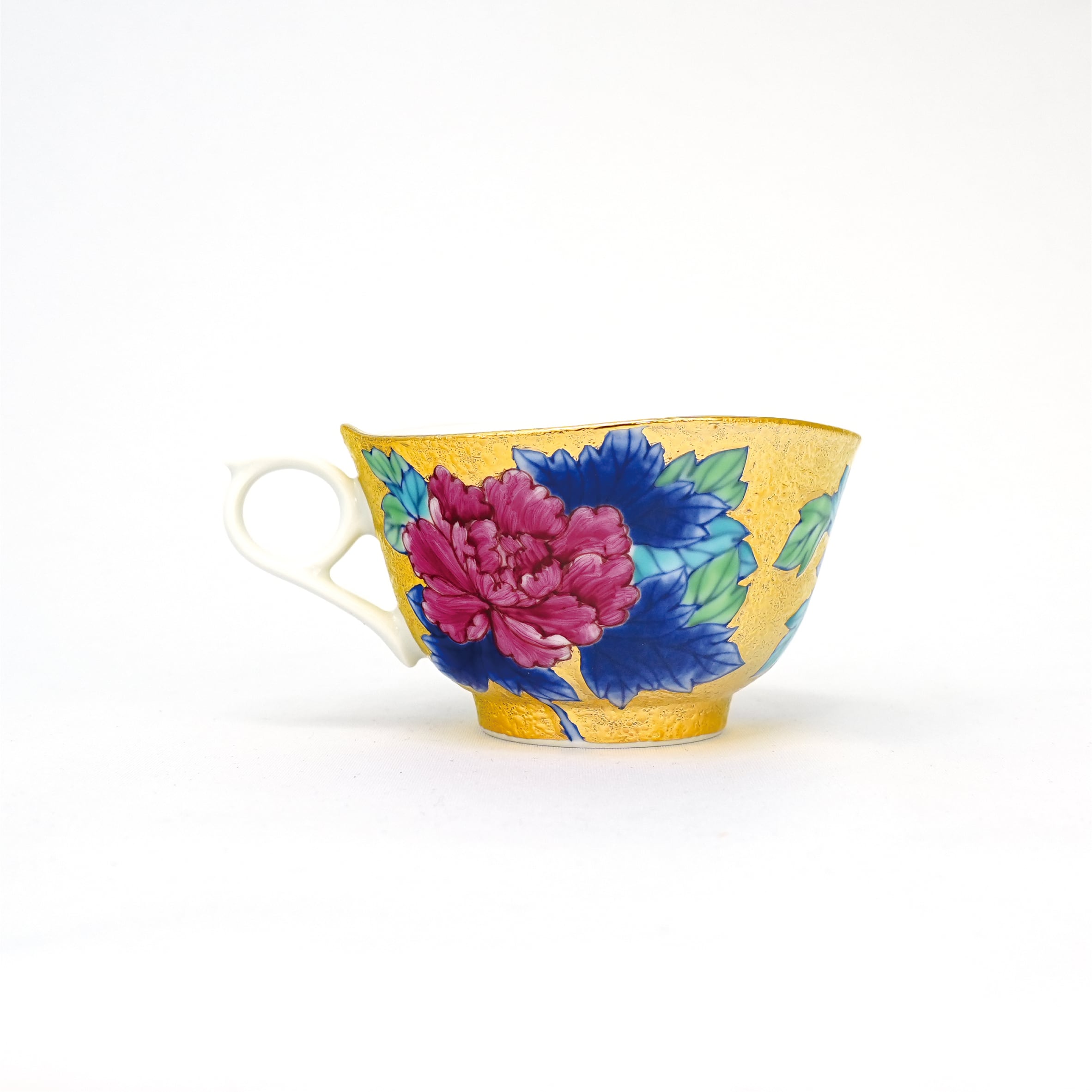 【アウトレット商品】珈琲碗 金彩牡丹蝶絵