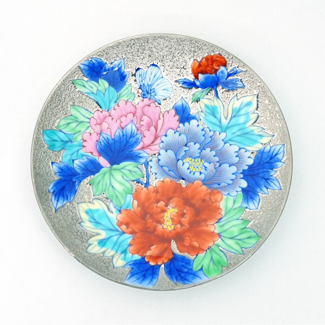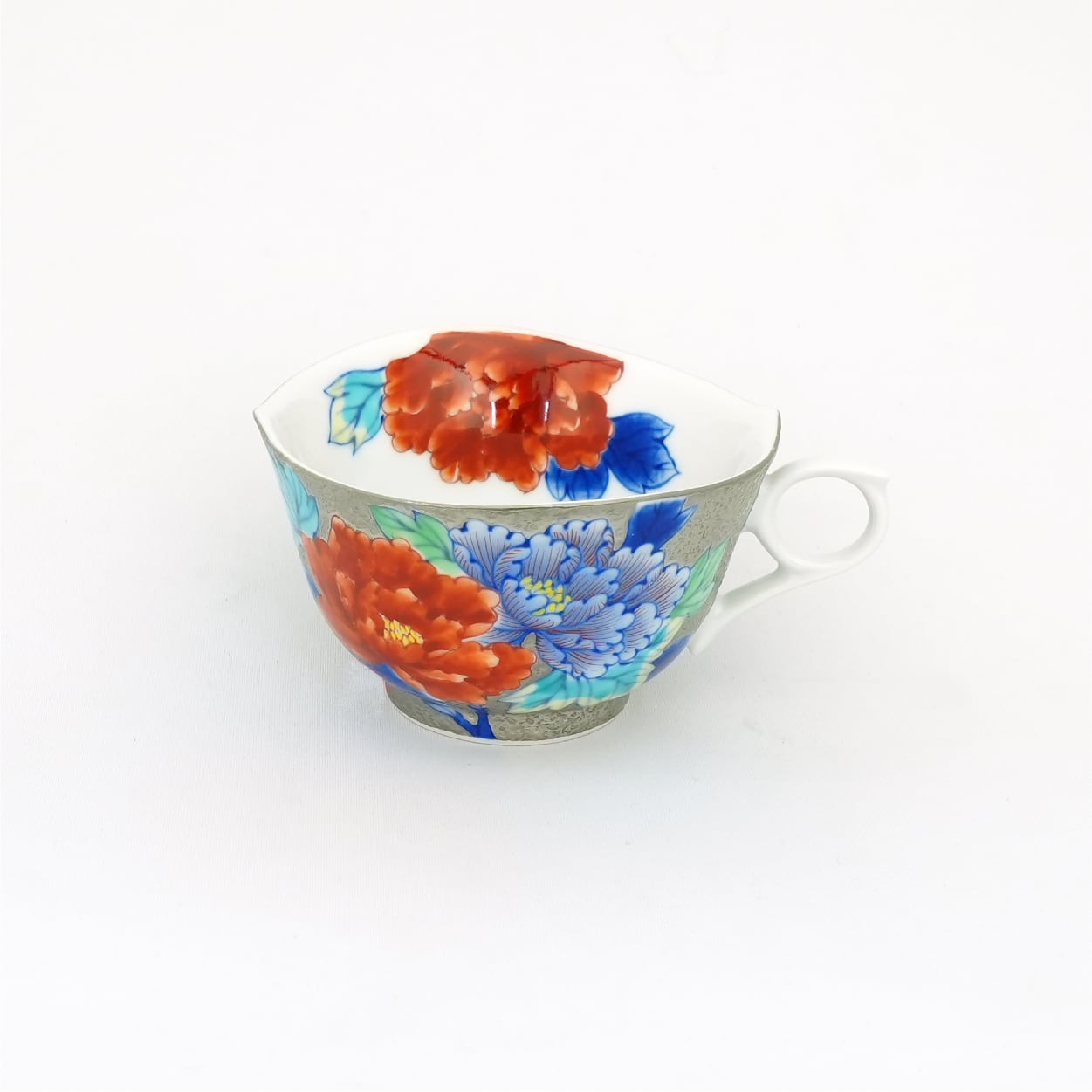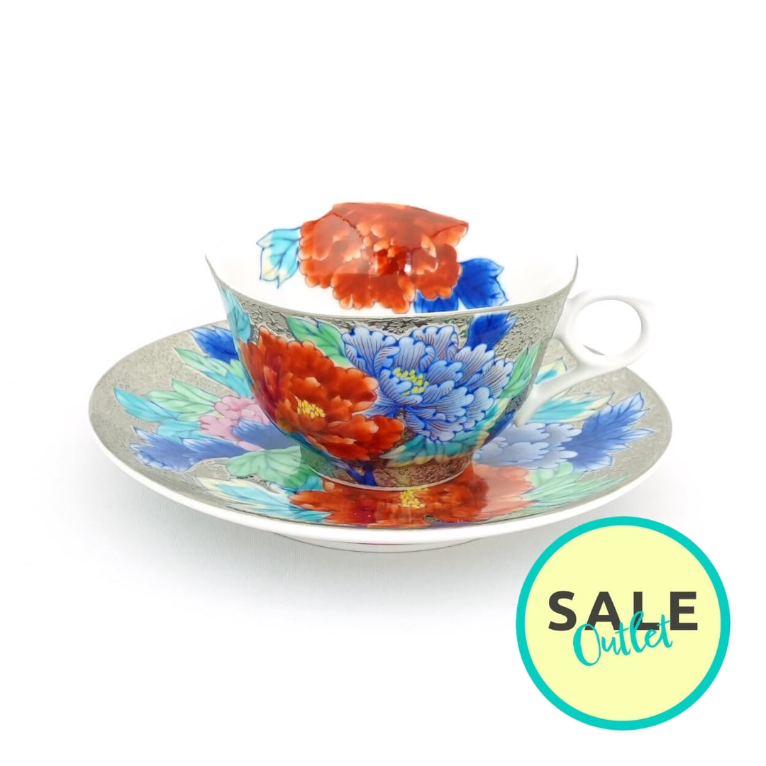 【アウトレット商品】珈琲碗 プラチナ彩牡丹蝶絵