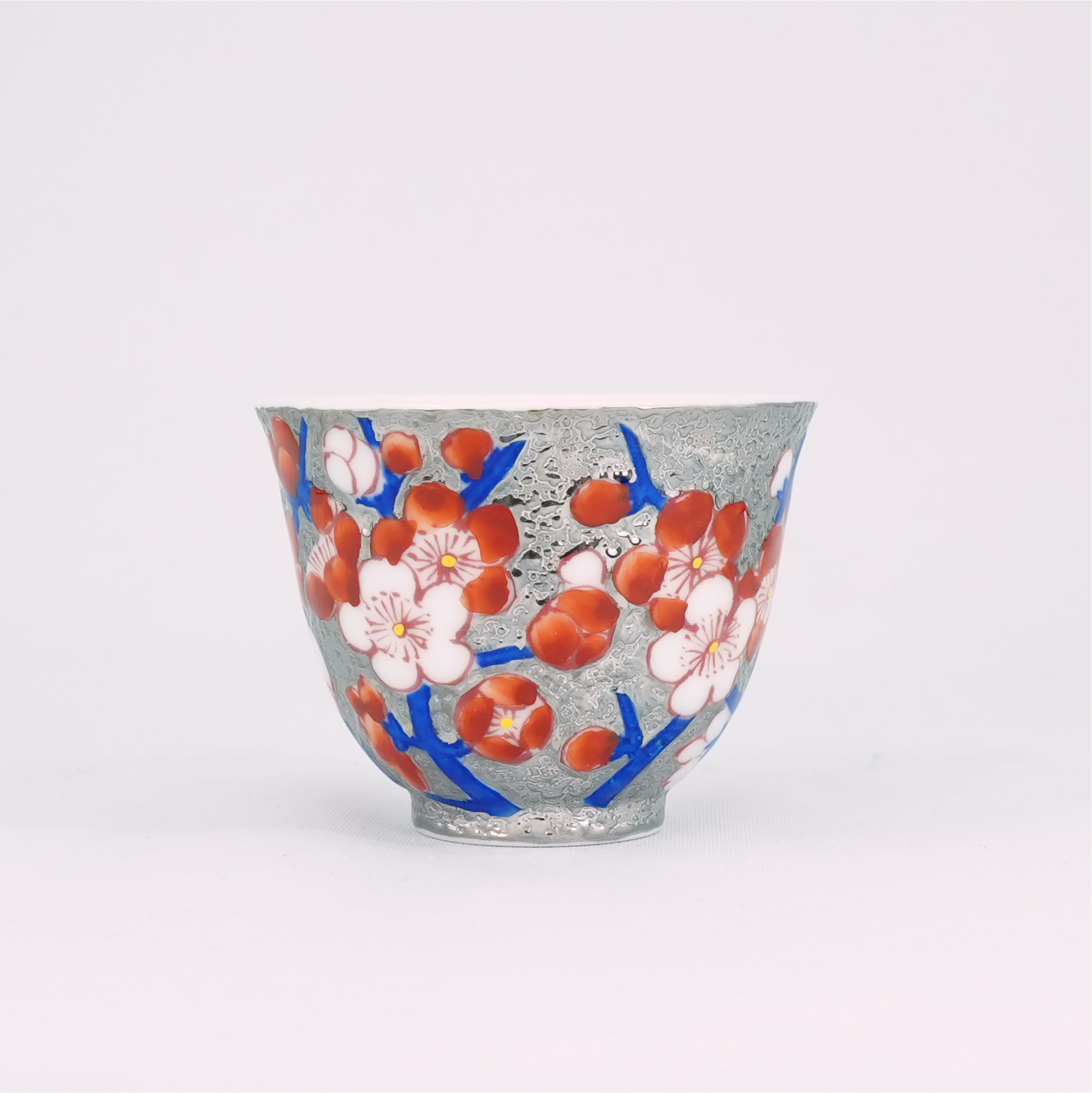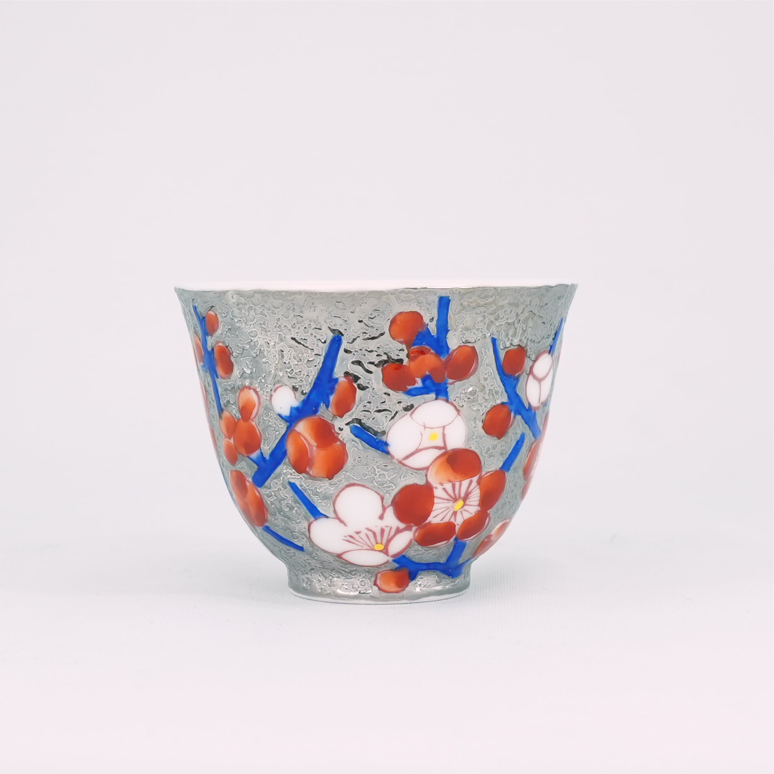 【アウトレット商品】煎茶碗 プラチナ彩梅絵