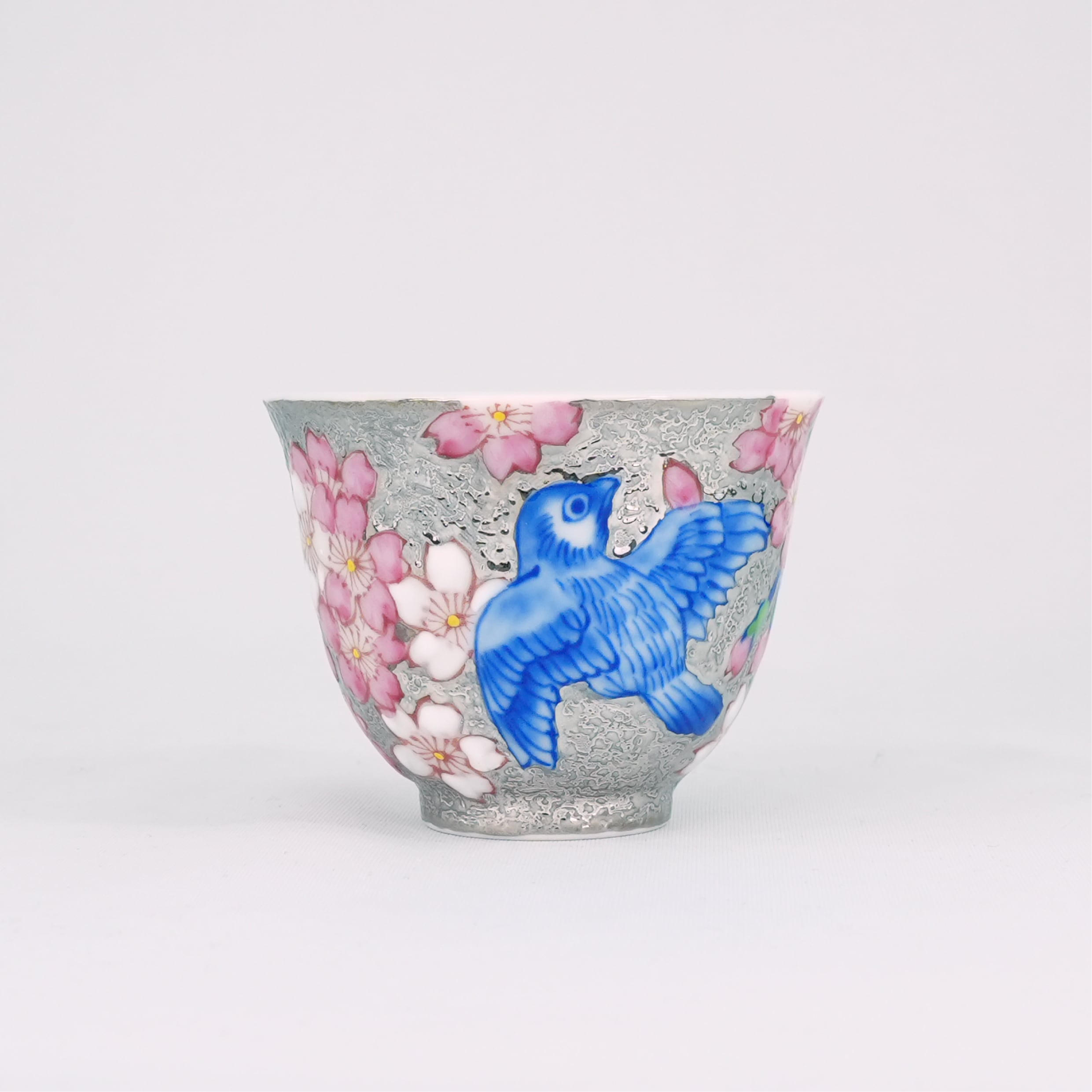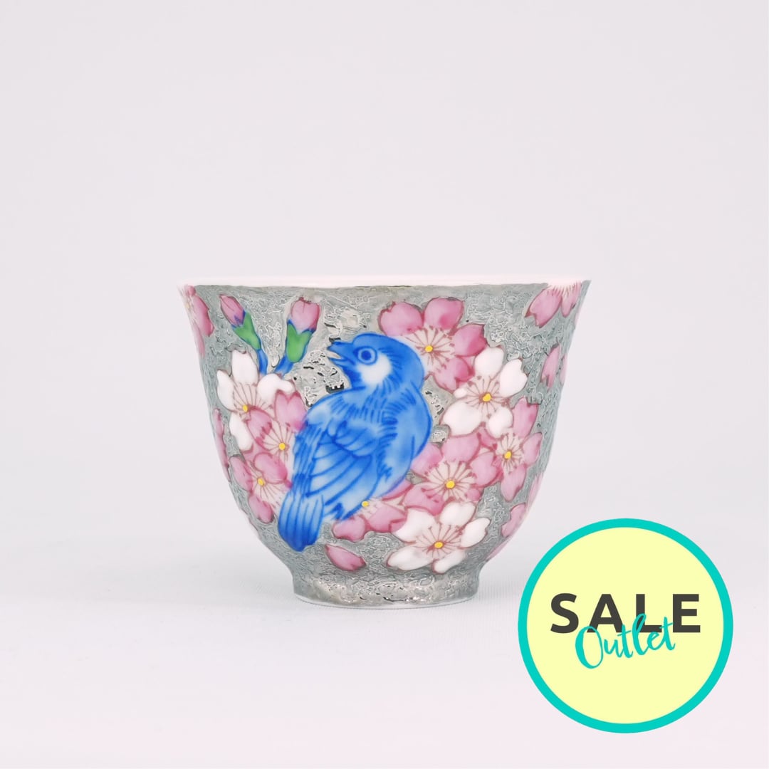 【アウトレット商品】煎茶碗 プラチナ彩桜鳥