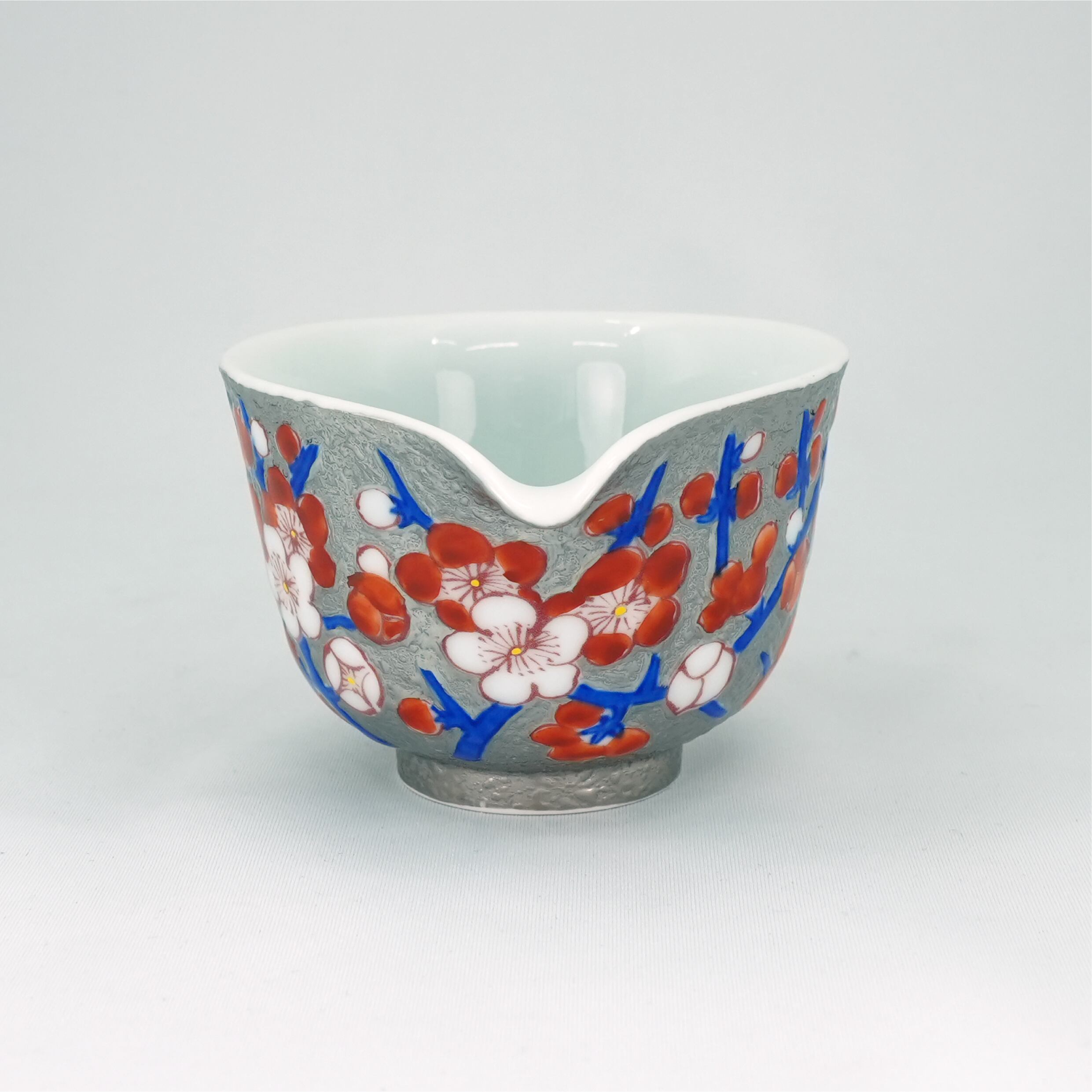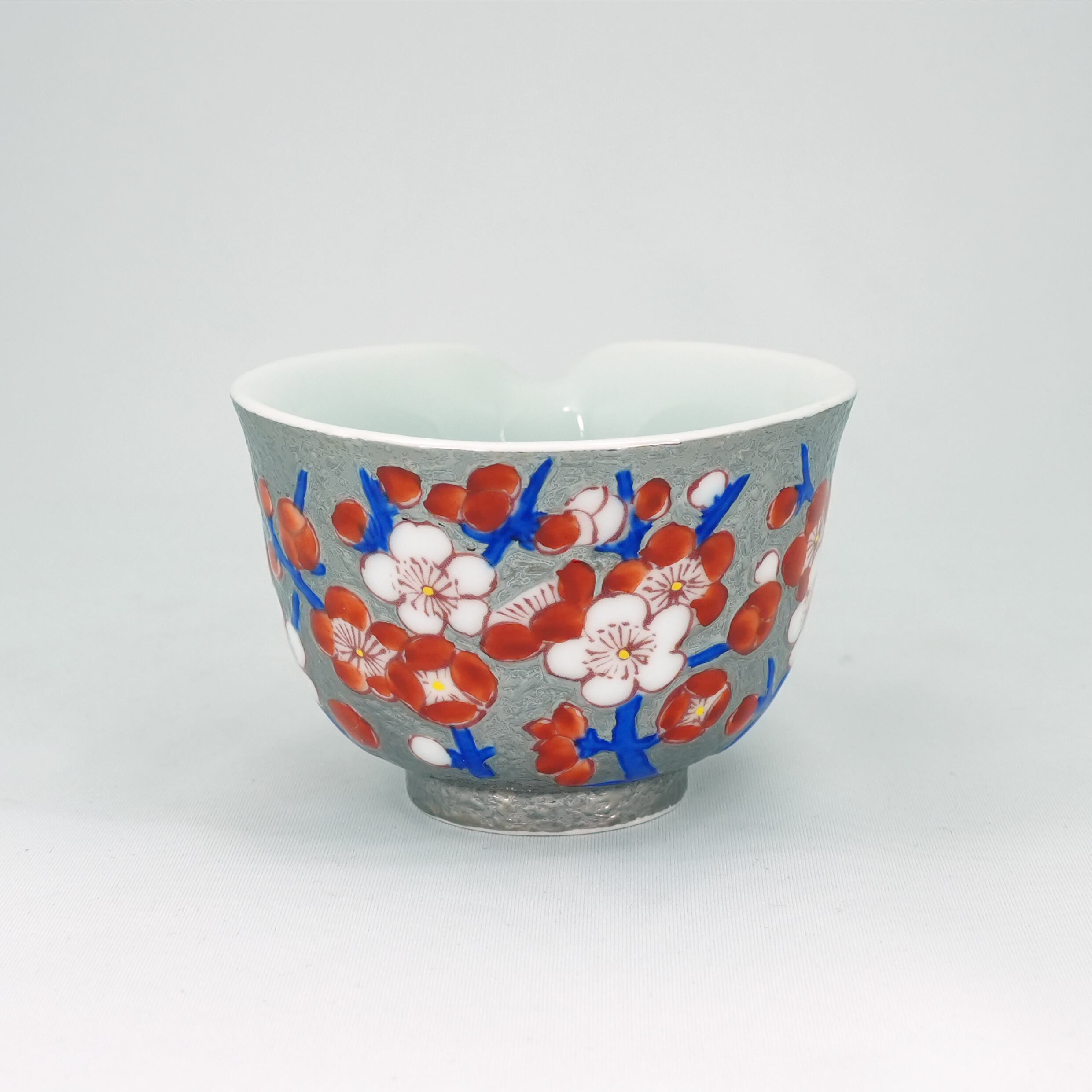 煌びやかなプラチナを背景に、鮮やかな赤絵が引き立てあう日本の伝統美を感じられる一品です。