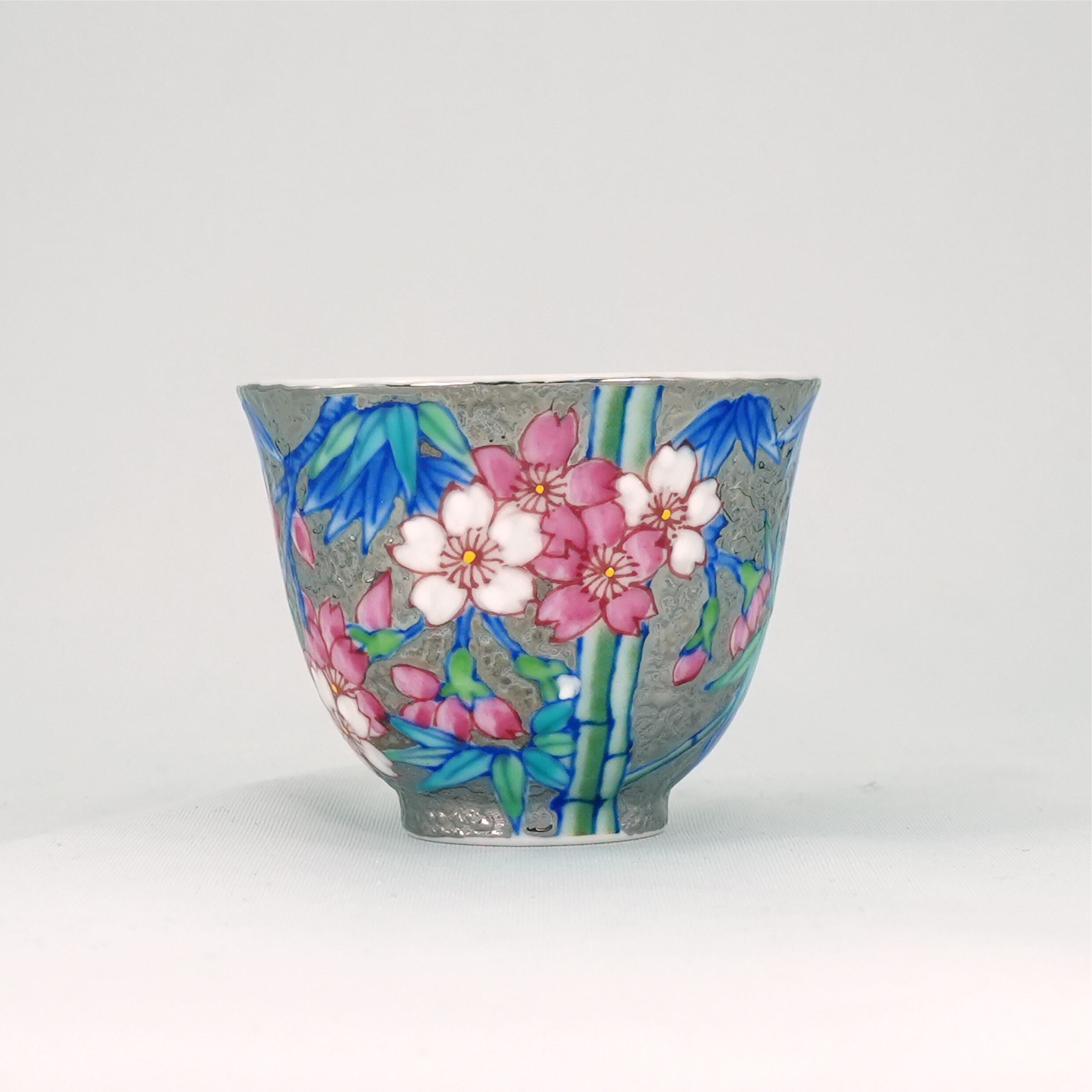 【アウトレット商品】煎茶碗 プラチナ彩竹桜
