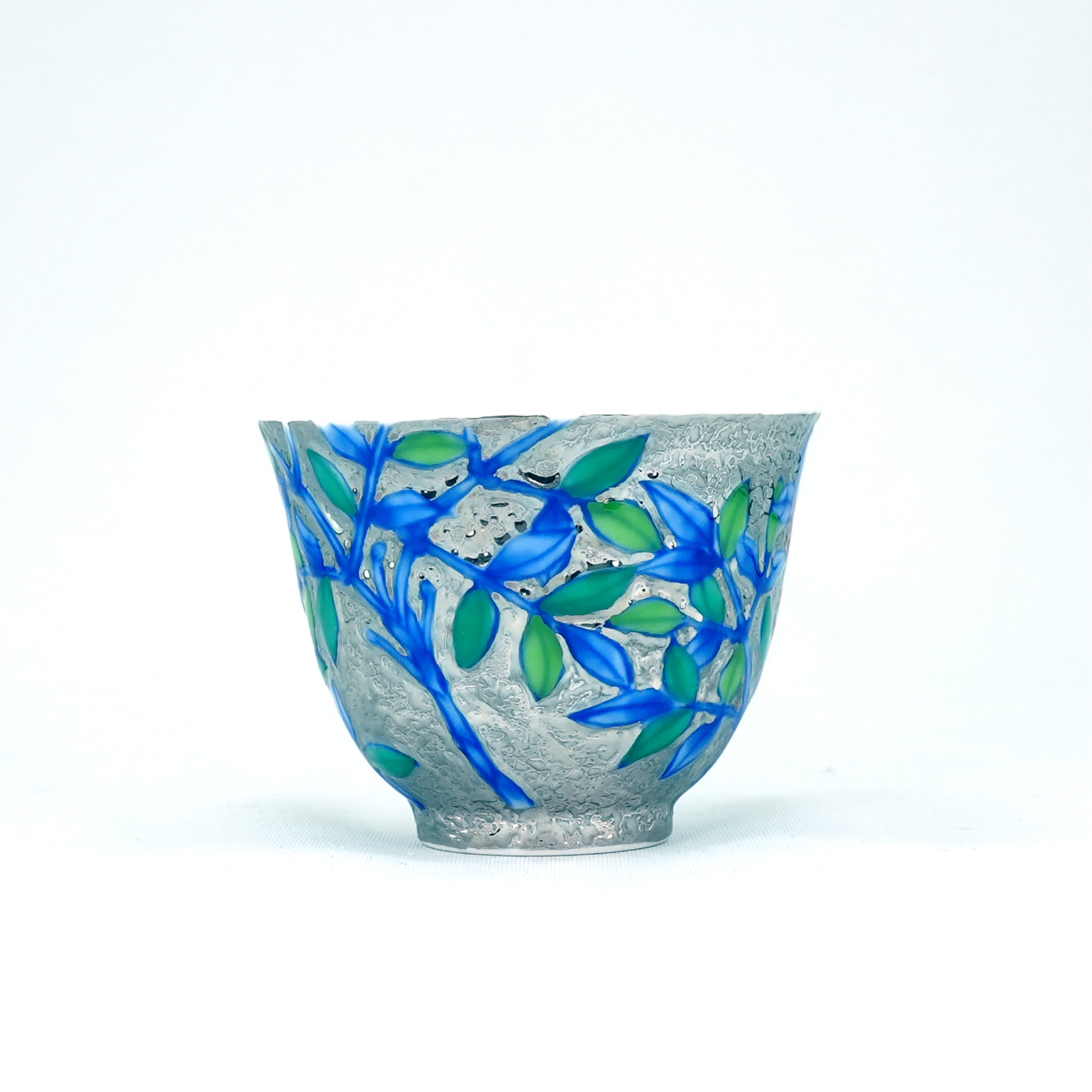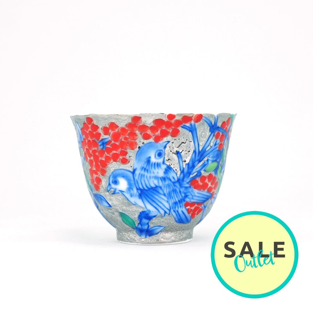 【アウトレット商品】煎茶碗 プラチナ彩南天鳥