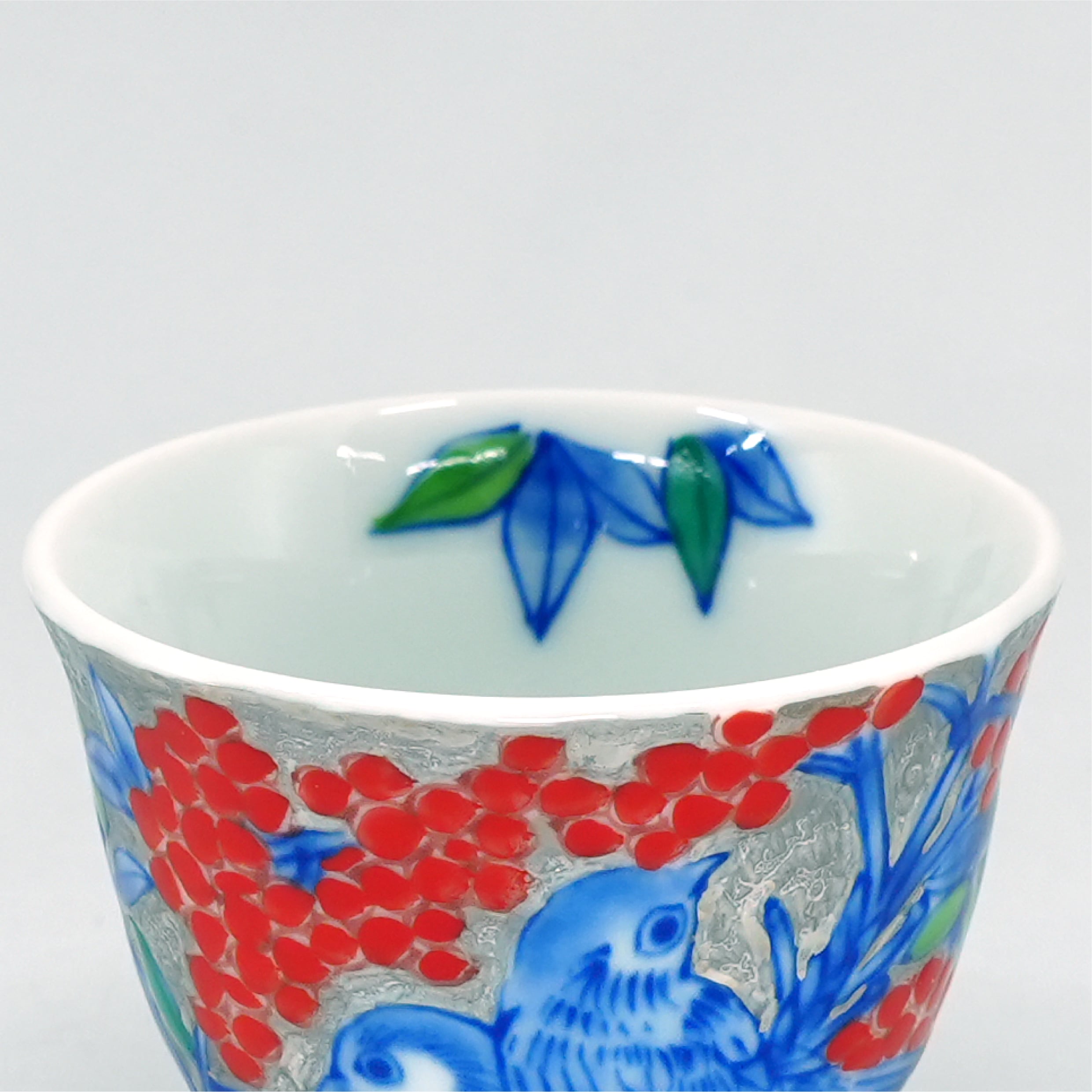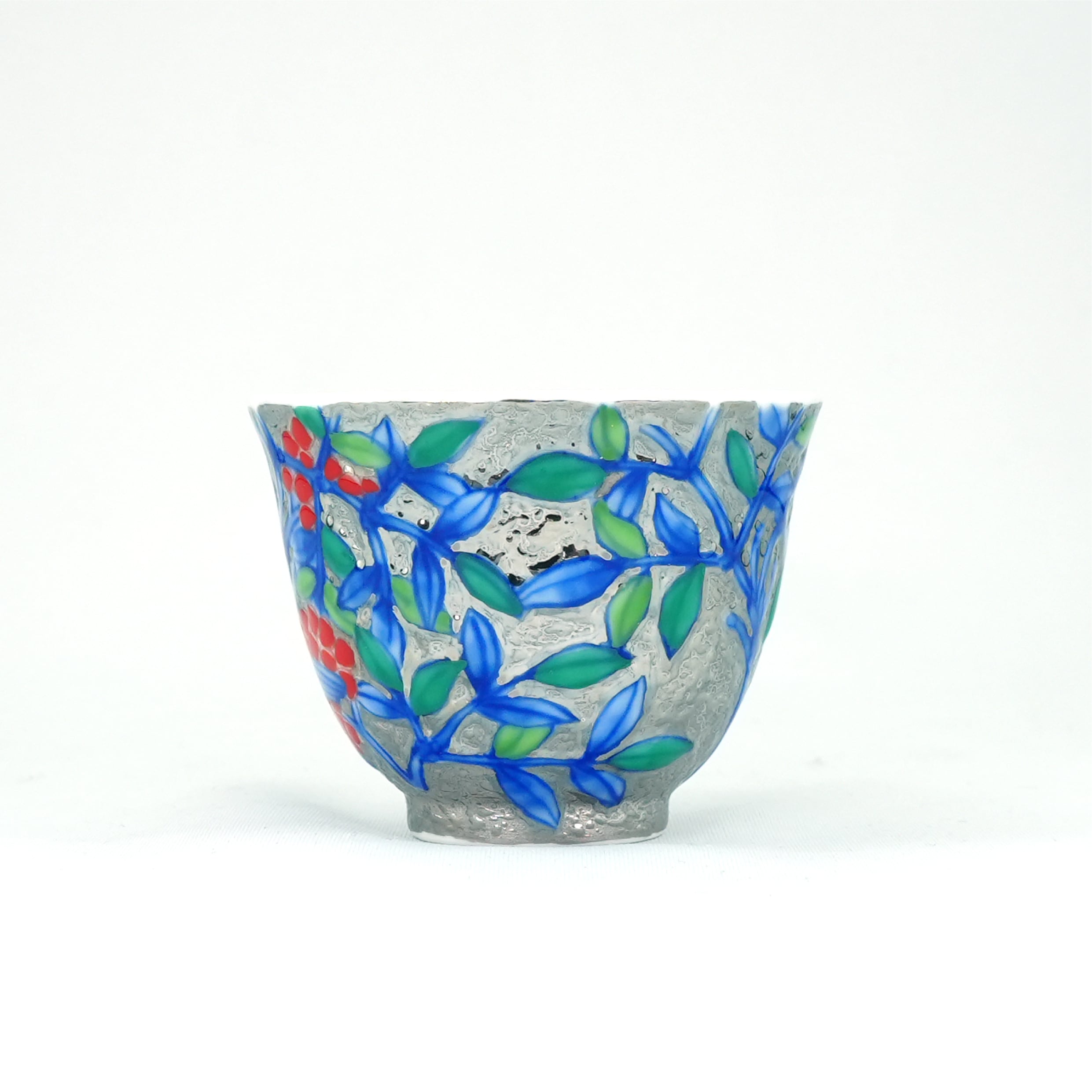 煌びやかなプラチナを背景に、鮮やかな赤絵が引き立てあう日本の伝統美を感じられる一品です。