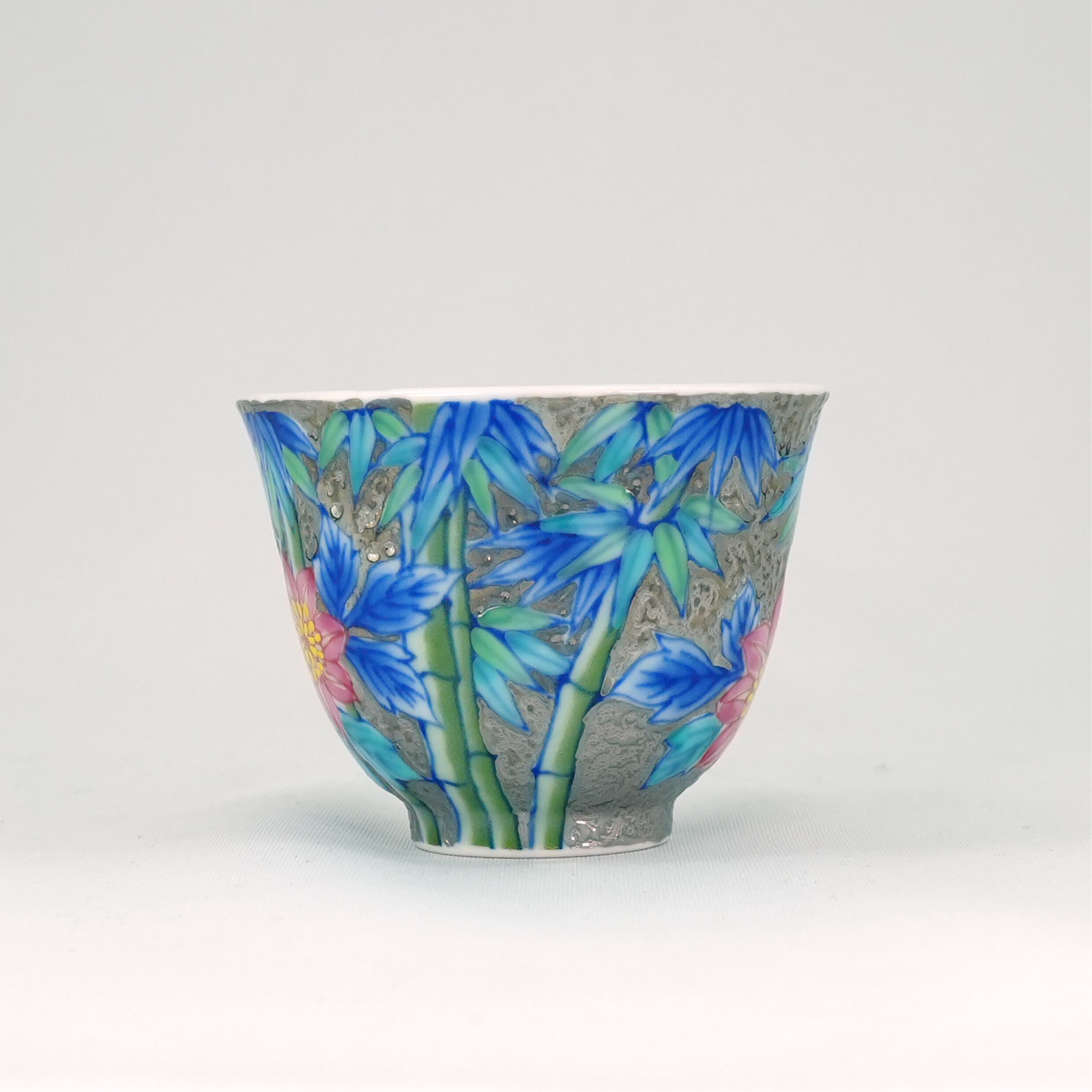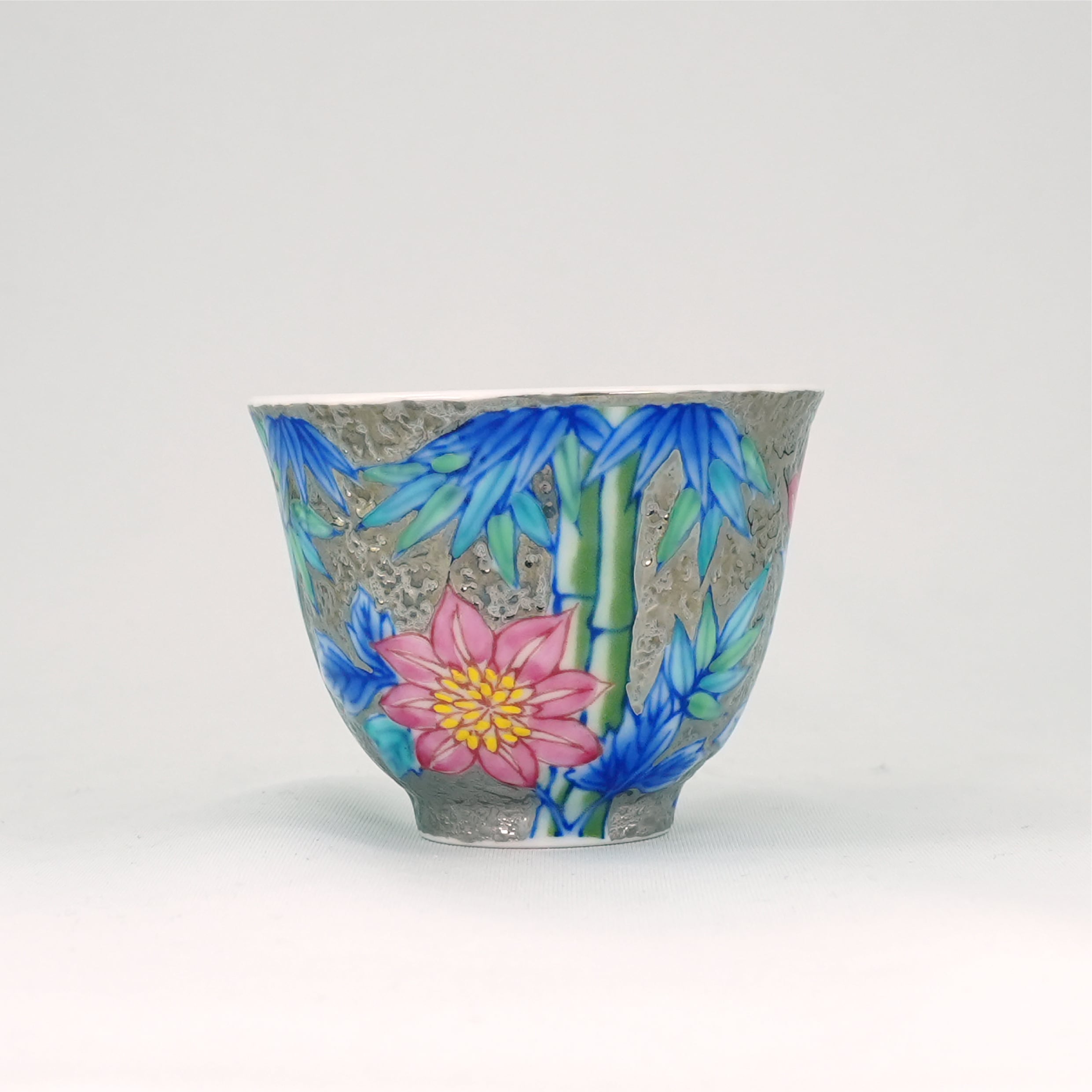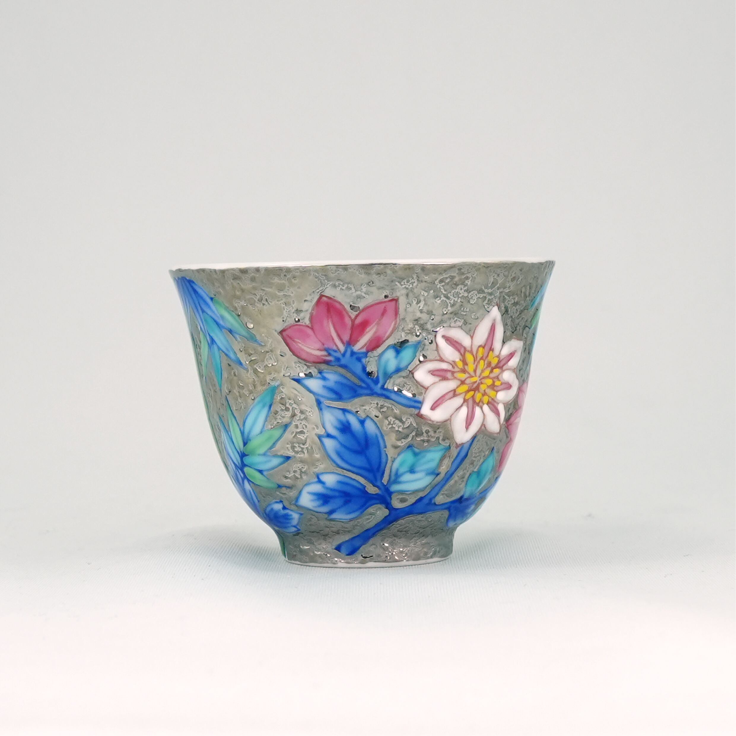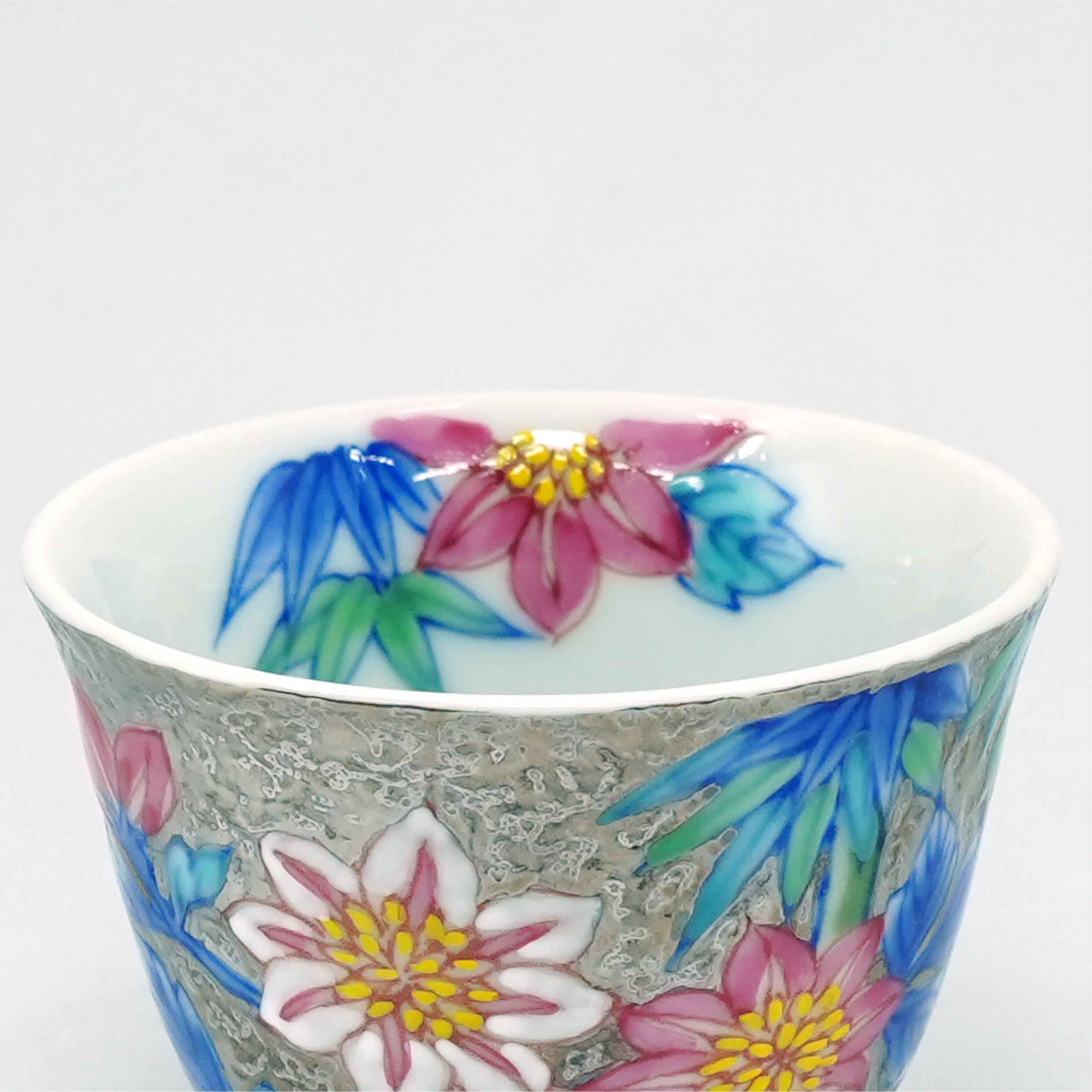【アウトレット商品】煎茶碗 プラチナ彩竹鉄線花