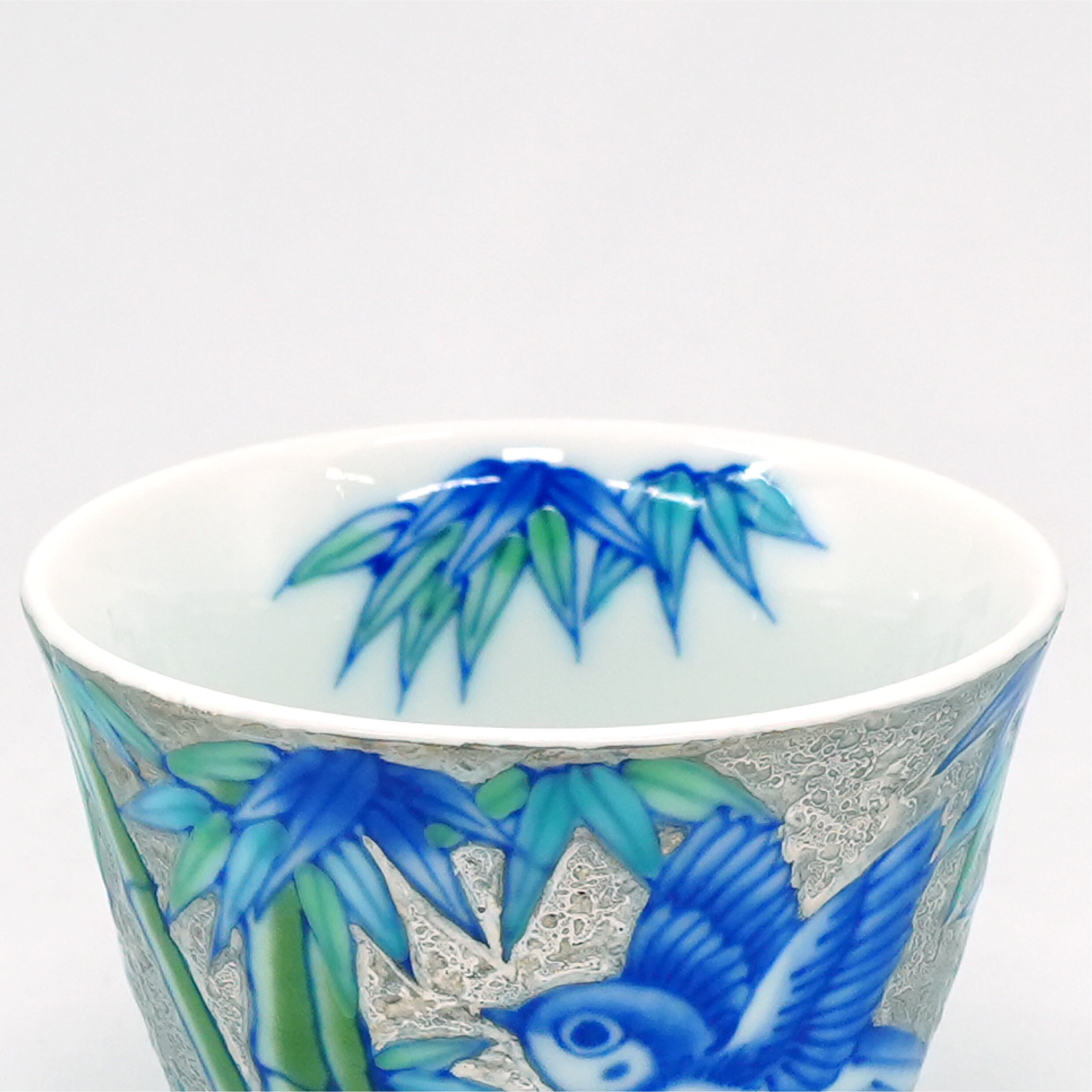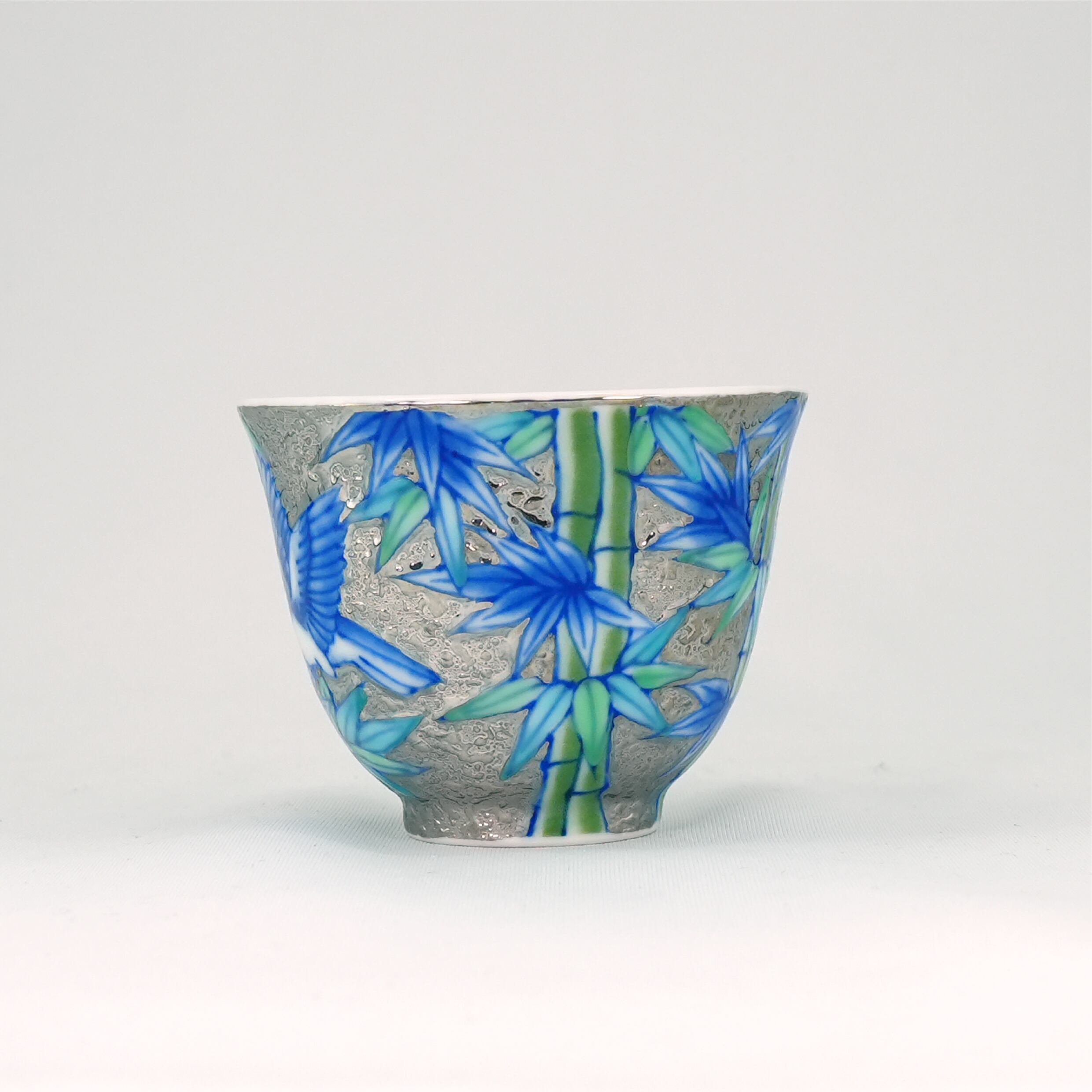 【アウトレット商品】煎茶碗 プラチナ彩竹雀
