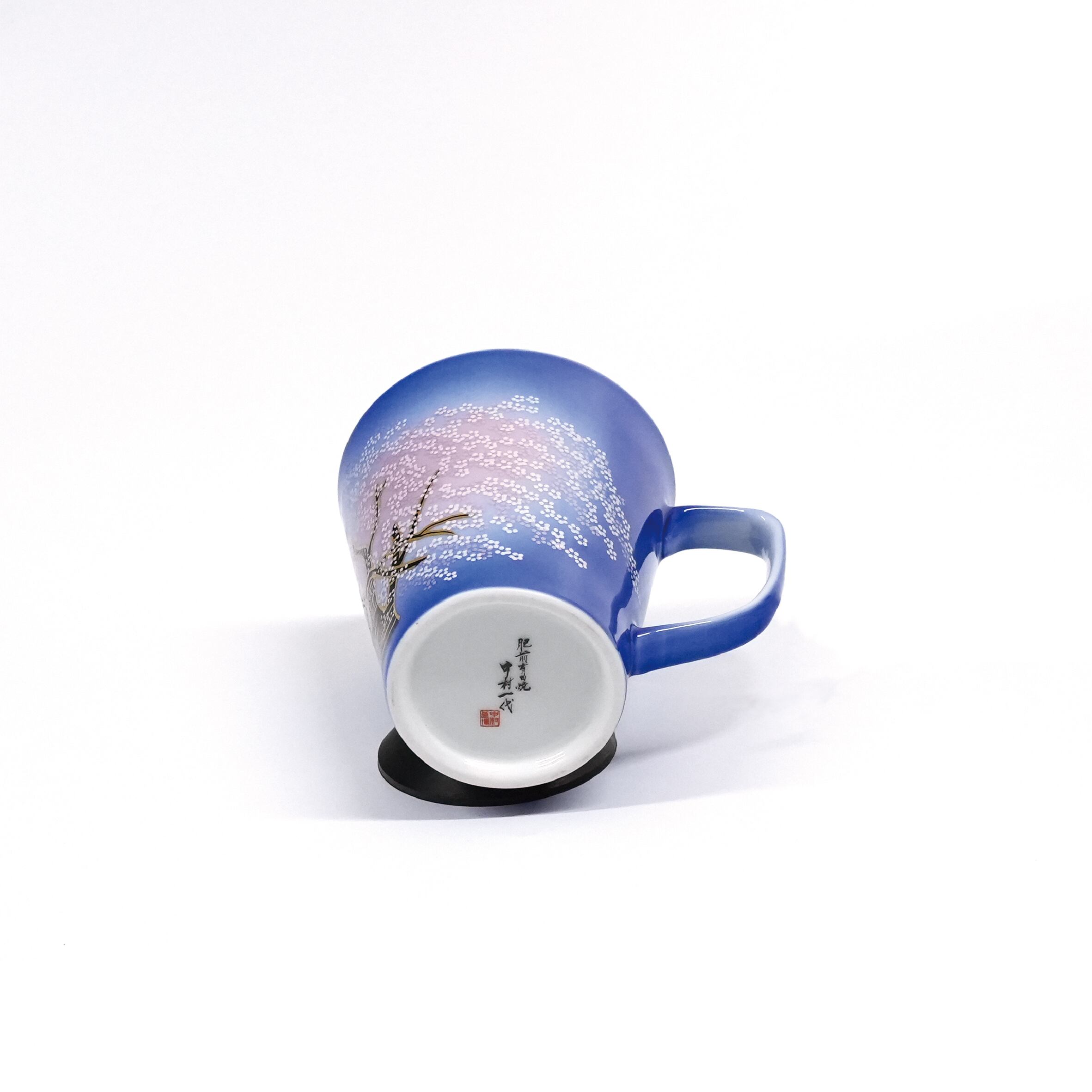 春の夜に咲き誇る桜を描いた、ブルーと淡いピンクのコントラストが美しいデザインです。